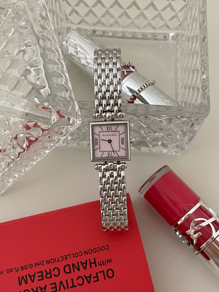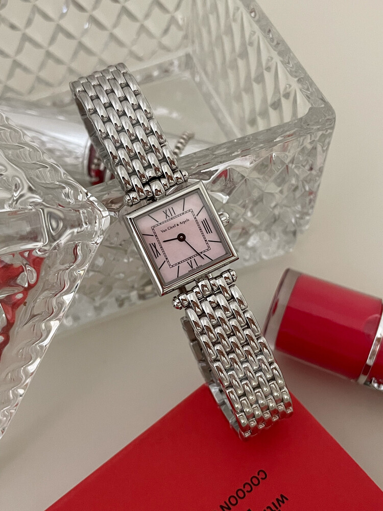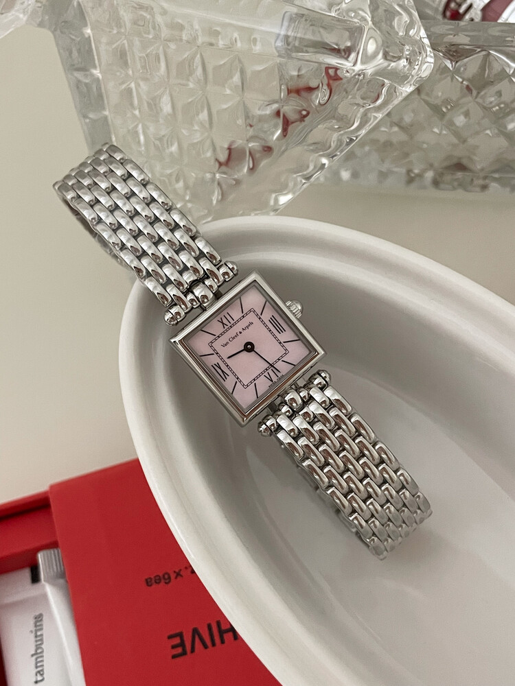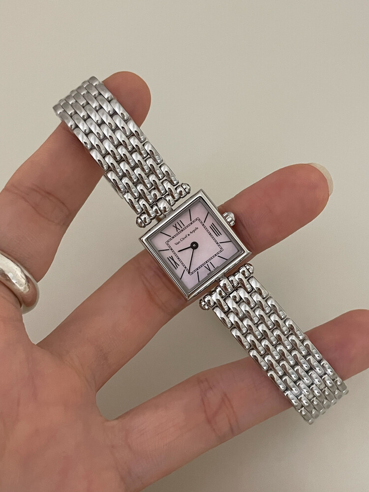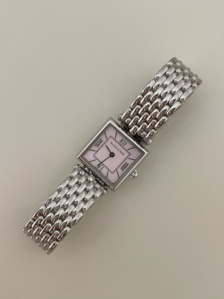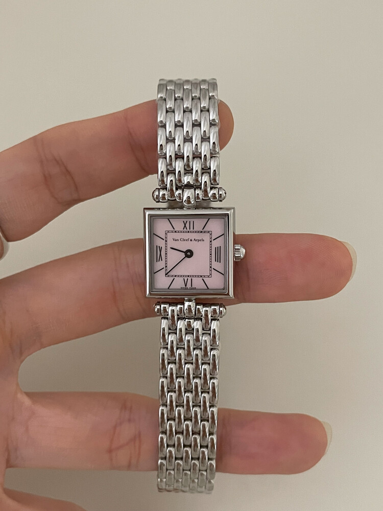 반클리프아펠 핑크 쉘 스퀘어 메탈 시계