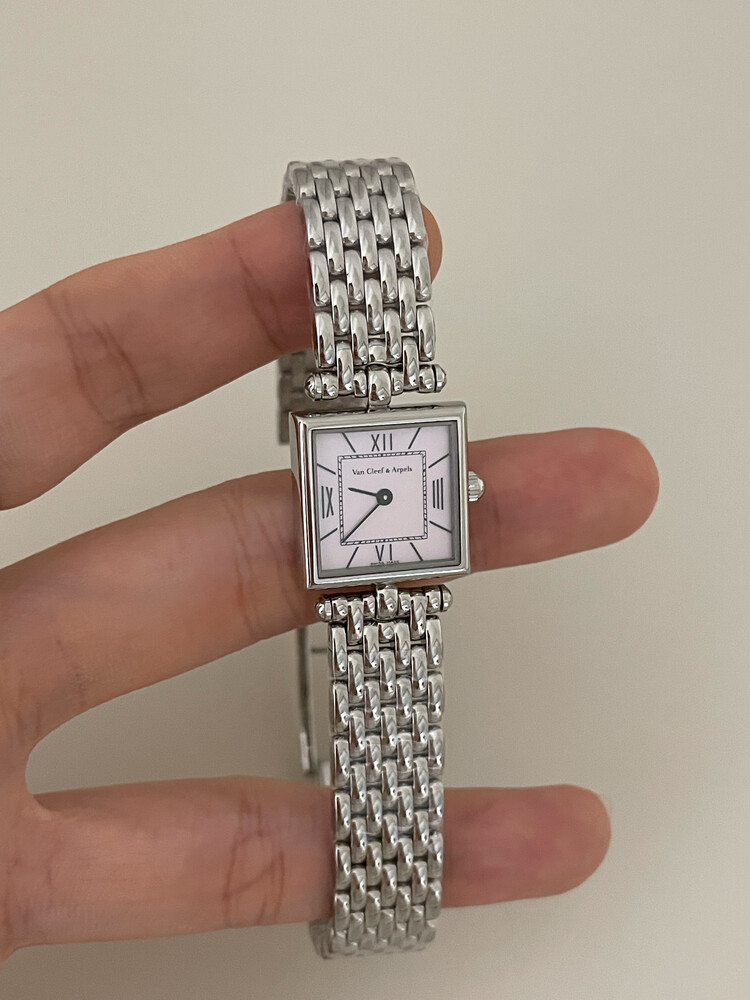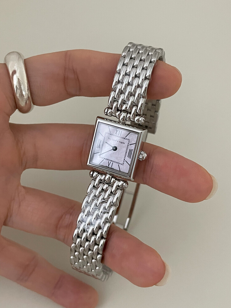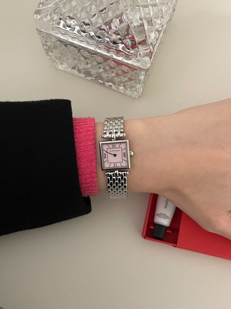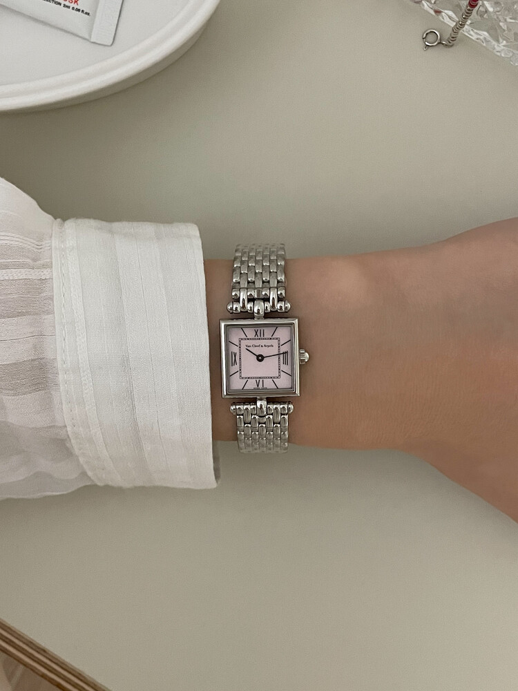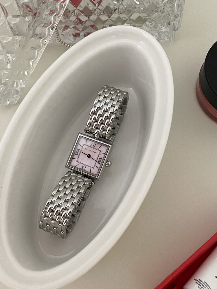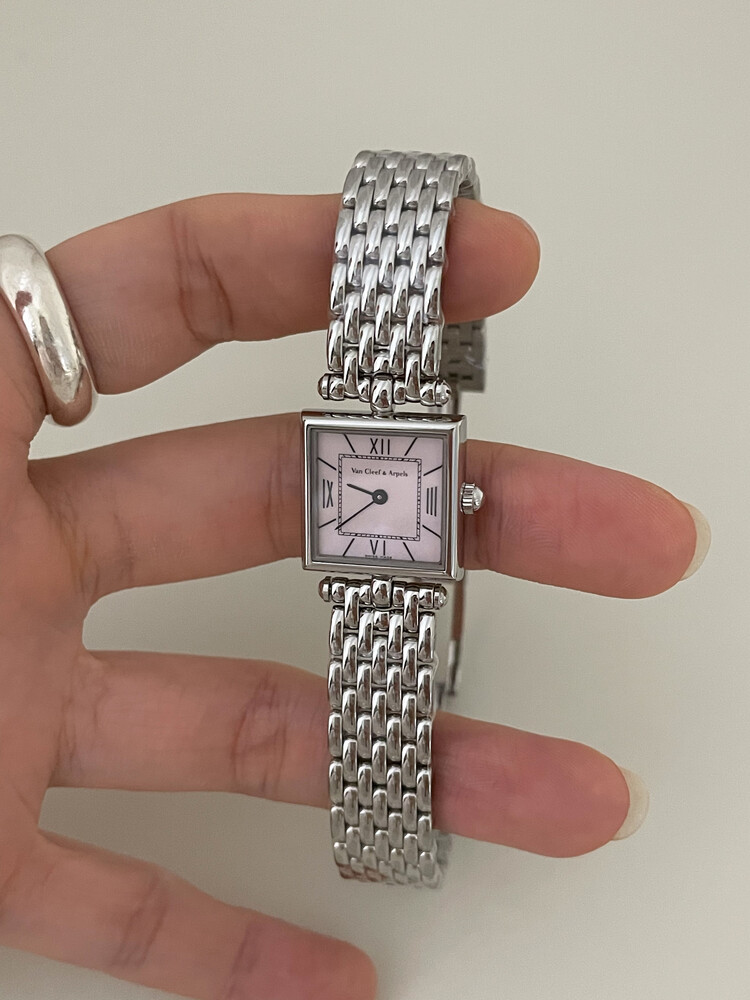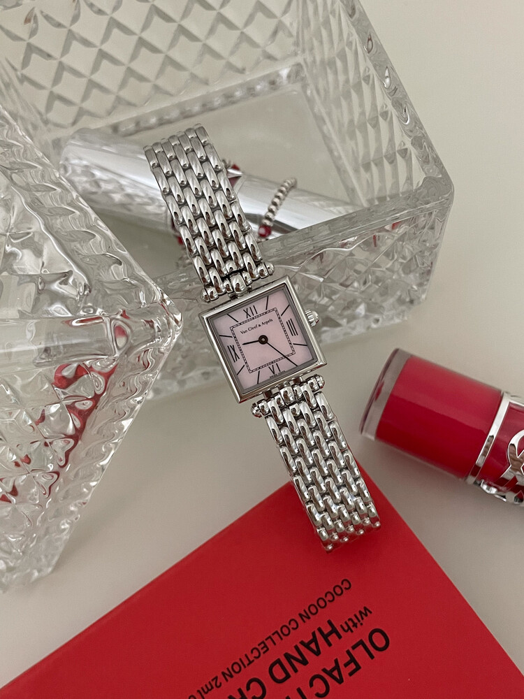 반클리프아펠 핑크 쉘 스퀘어 메탈 시계