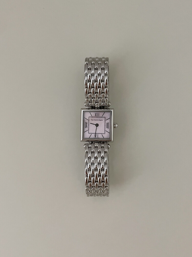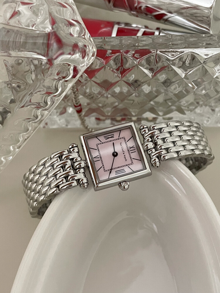 VanCleef & Arpels mother-of-pearl pink square metal watch