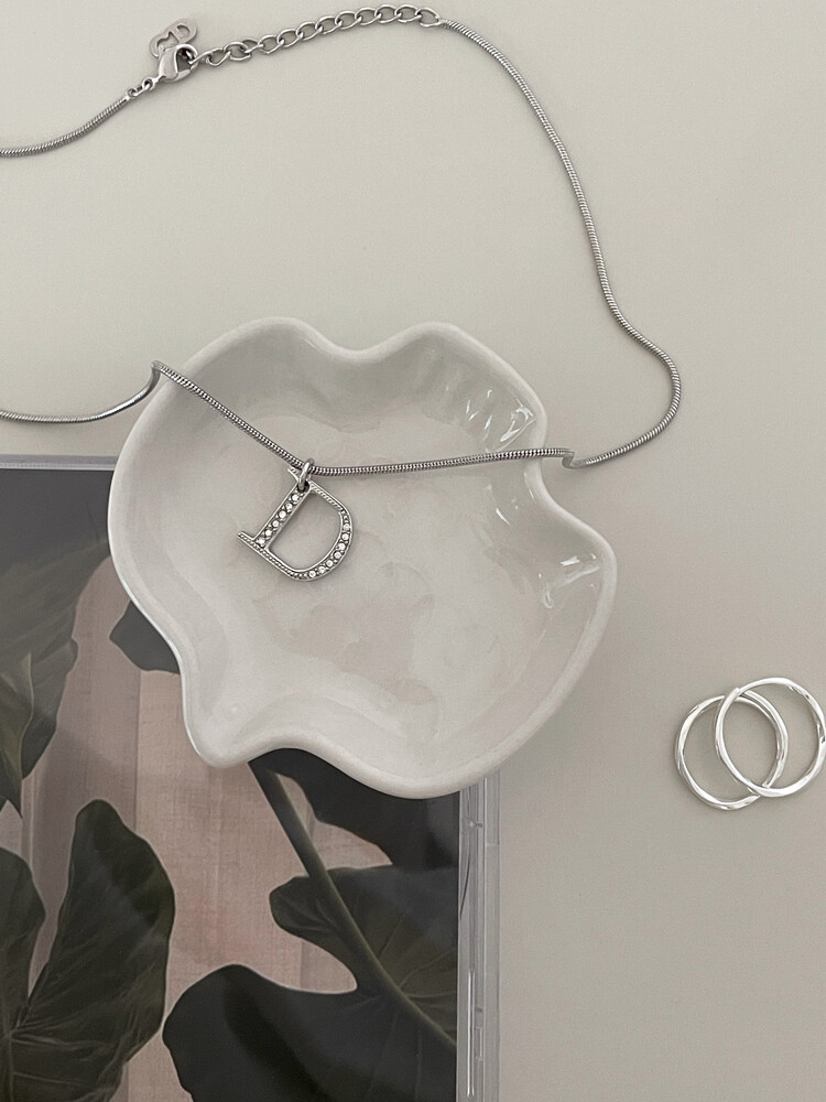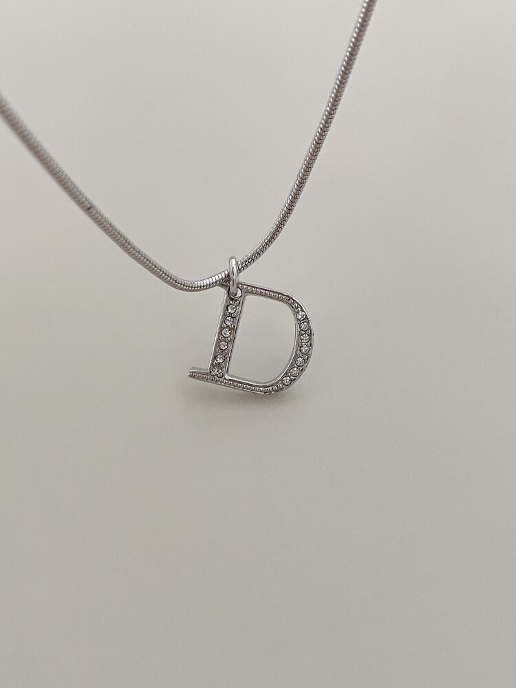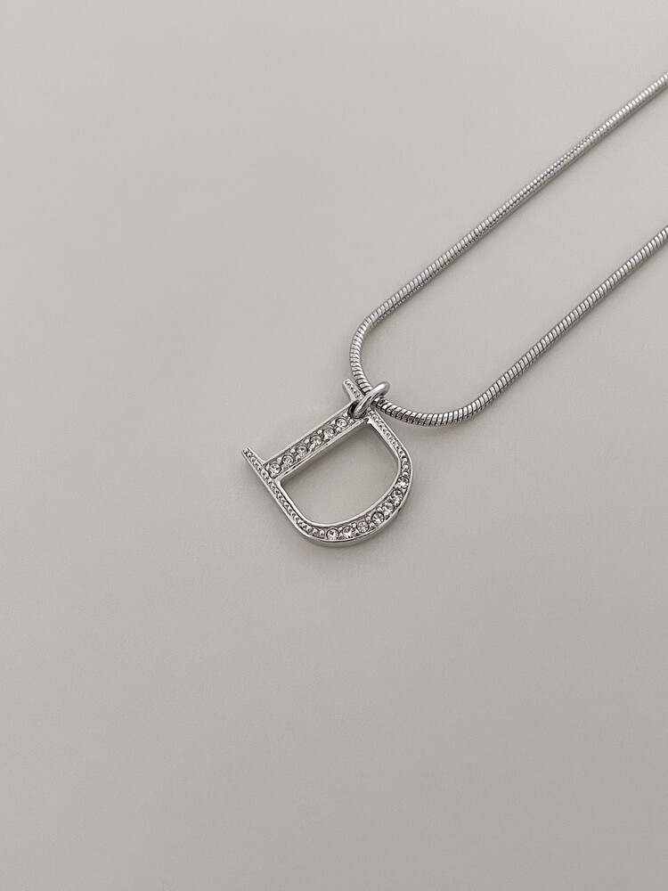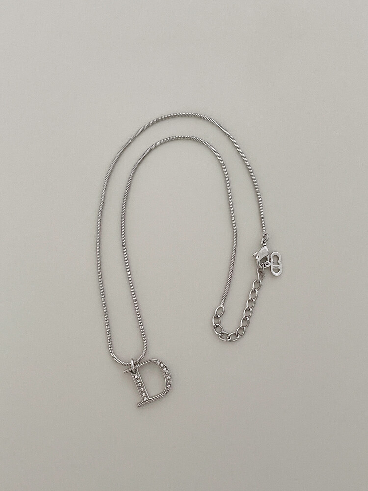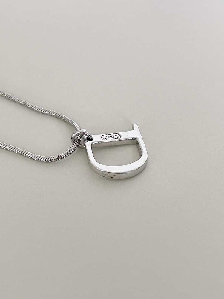 dior d-logo stone silver necklace