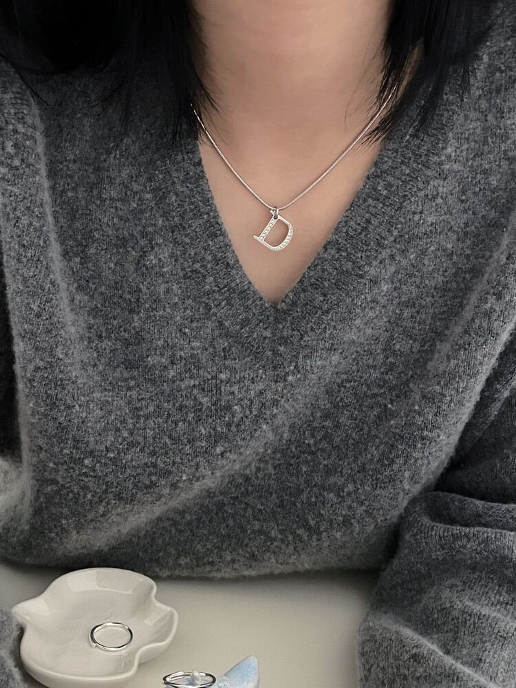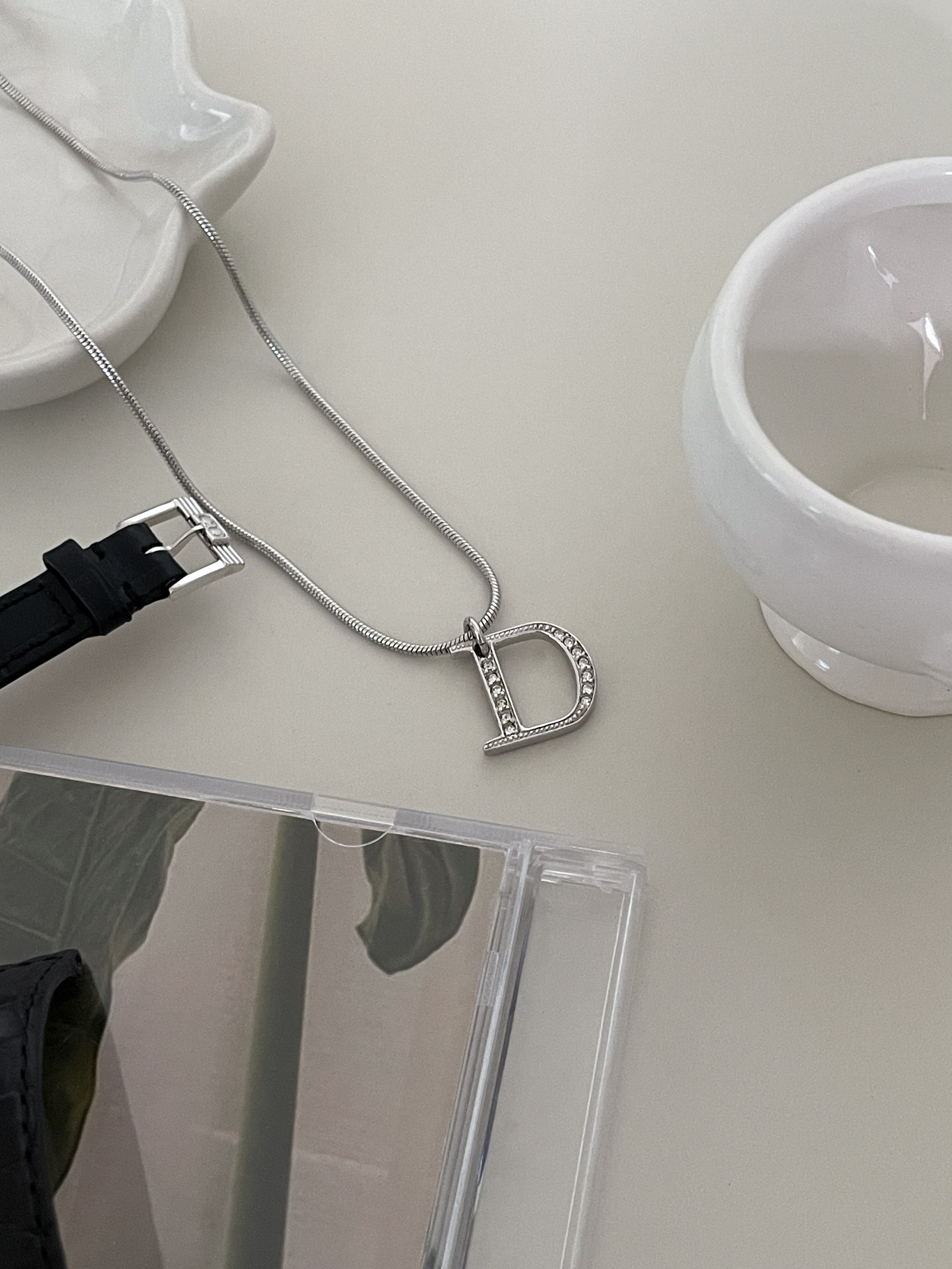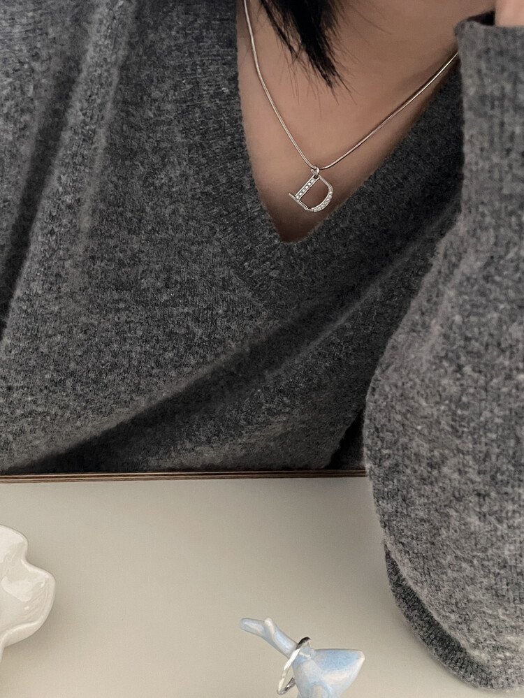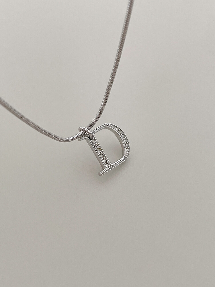 dior d-logo stone silver necklace