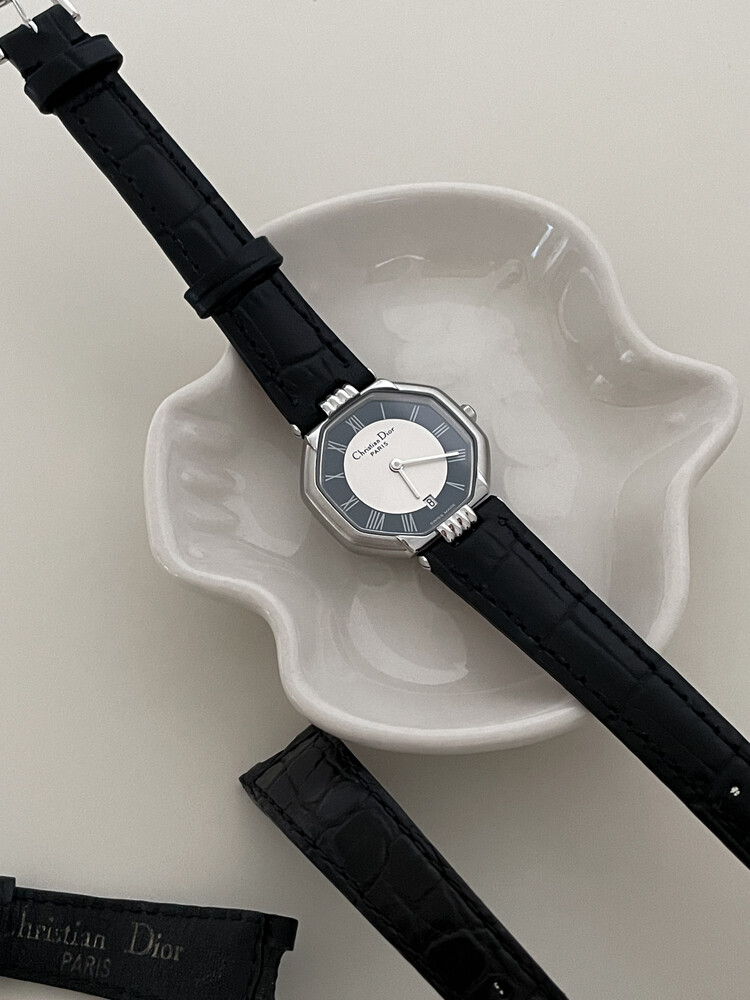 디올 옥타곤 네이비 다이얼 데이트 시계