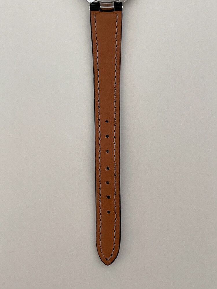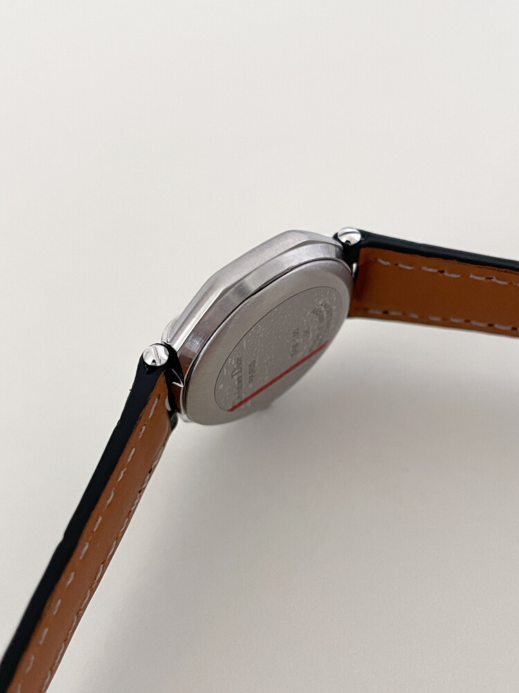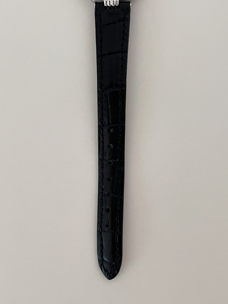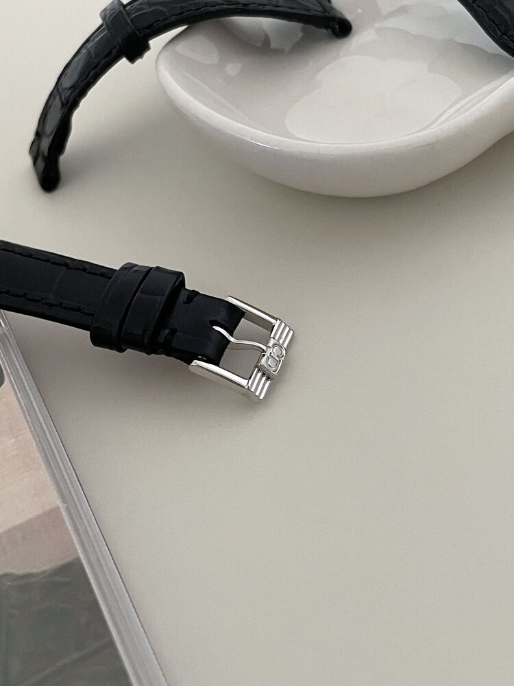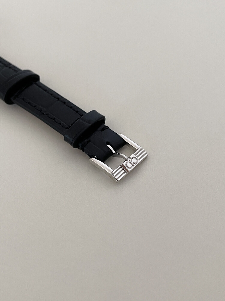 현재는 주문 제작한 블랙 소가죽 스트랩 체결되어 있습니다.