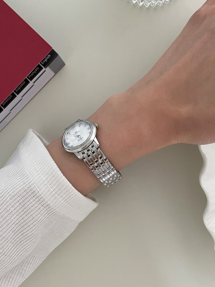 8개의 다이아와 투톤 처리된 화이트 자개 다이얼로 포인트 준 제품입니다.